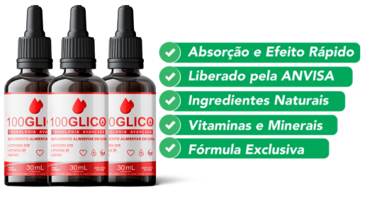 O 100 GLICO, foi desenvolvido com a combinação perfeita de cápsulas e gotas, fazendo você ter 100% do aproveitamento dos componentes, agindo de forma imediata na corrente sanguínea e nas células pancreáticas.